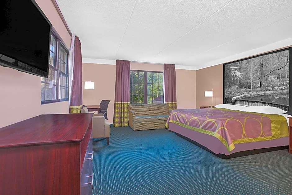 This suite features a microwave, small refrigerator and seating area with a sofa bed.